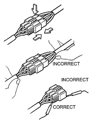 (2) When disconnecting a connector, do not pull on the harnesses. Grasp the connector directly and separate it.