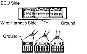(2) Disconnect the ECU connector. Check the ground terminal on the ECU side and wire harness side for bending, corrosion or foreign matter. Lastly, check the contact pressure of the female terminals.