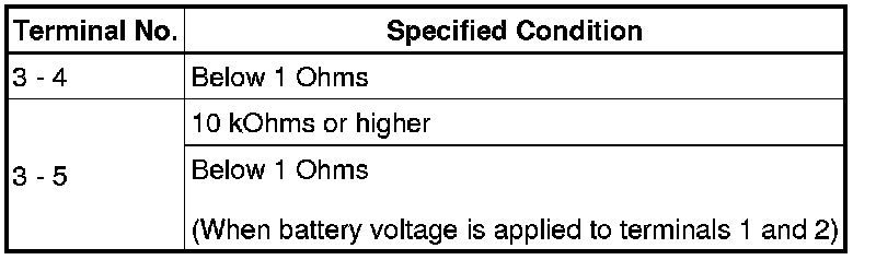 If the result is not as specified, replace the relay.