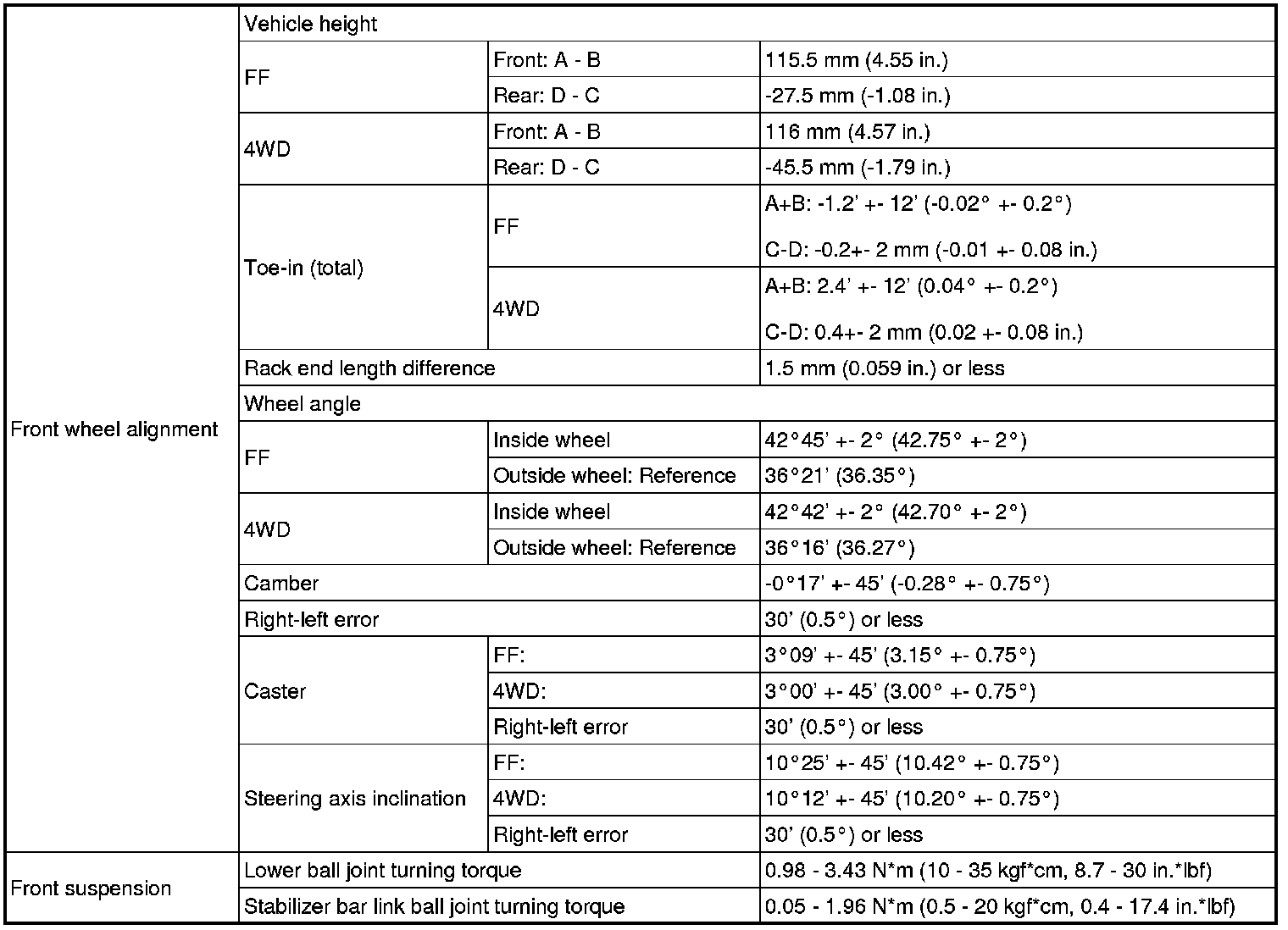 SERVICE SPECIFICATIONS: SUSPENSION: SERVICE DATA