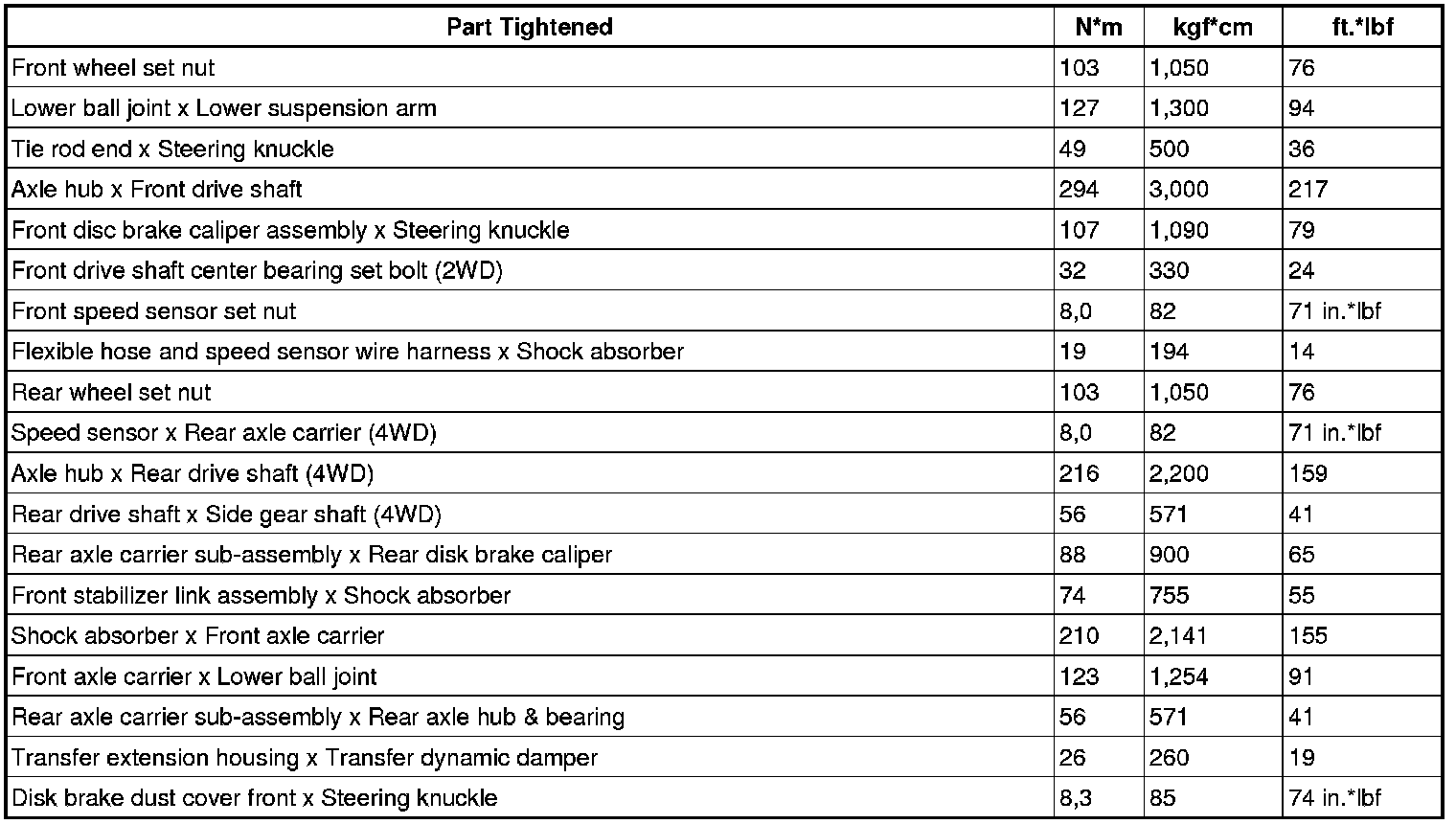 SERVICE SPECIFICATIONS: AXLE: TORQUE SPECIFICATIONS