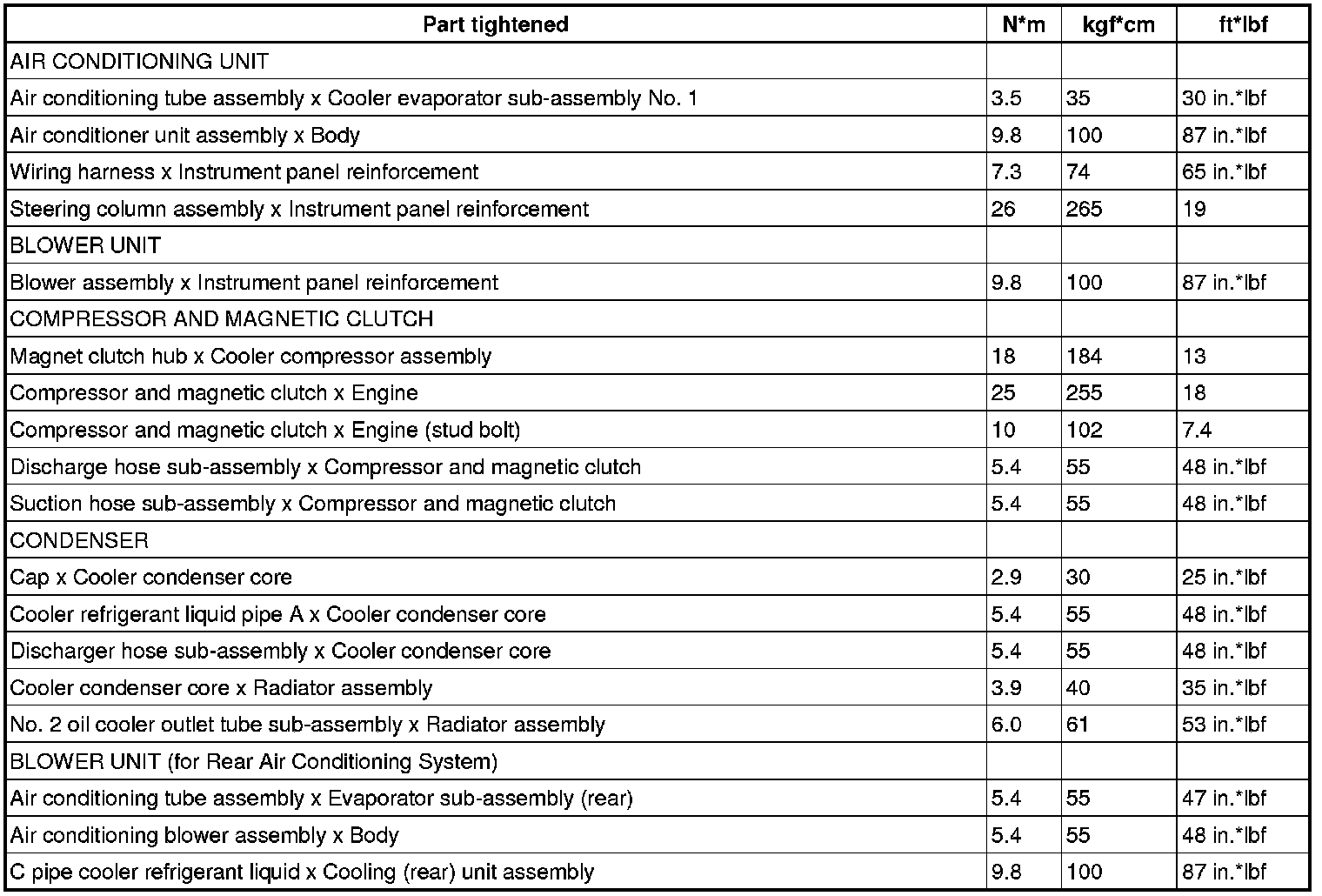 SERVICE SPECIFICATIONS: AIR CONDITIONING: TORQUE SPECIFICATIONS