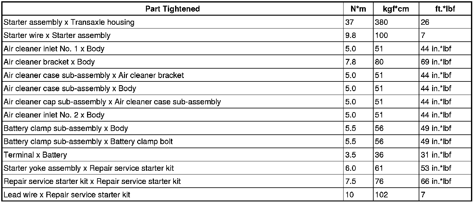 SERVICE SPECIFICATIONS: 2GR-FE STARTING: TORQUE SPECIFICATIONS