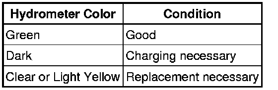 (1) If the electrolyte level is low, replace the battery (or add distilled water) and check the charging system.