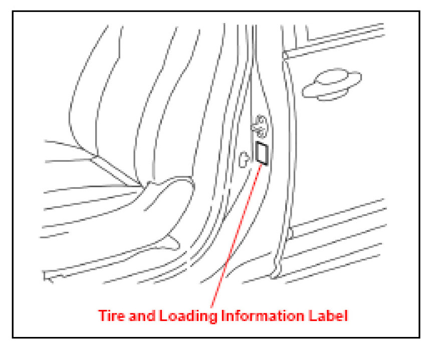 During Pre-Delivery Service (PDS), the tire pressure must be set to the specification as indicated on the Vehicle Loading and Tire Information label, located inside the driver's door jam. Follow the procedure below to initialize the TPWS.