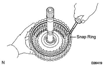 (b) Using a snap ring expander, remove the snap ring from the direct clutch drum.