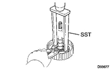 (a) Place SST on the clutch balancer and compress the spring with a press.