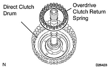 (d) Remove the overdrive clutch return spring from the direct clutch drum.