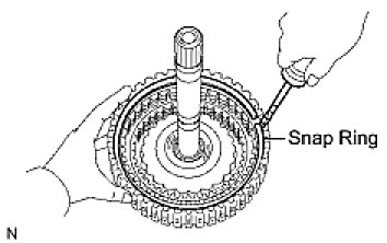 NOTE: The end gap of the snap ring should not align with any of the stoppers.