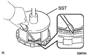 (c) Using a screwdriver, install the snap ring.