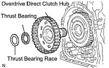 (a) Remove the thrust bearing race, thrust bearing and overdrive direct clutch hub from the planetary gear assembly.