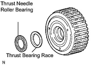 (b) Remove the thrust needle roller bearing and thrust bearing race from the rear planetary sun gear assembly.