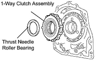 (a) Remove the 1-way clutch assembly and the thrust needle roller bearing from the transaxle case.