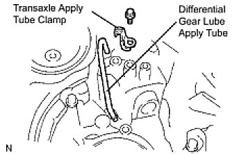 (a) Remove the bolt, transaxle apply tube clamp and differential gear lube apply tube from the transaxle housing.
