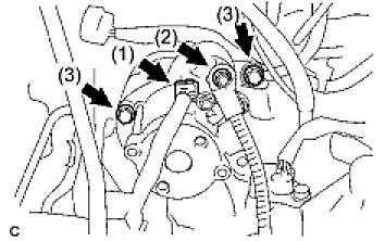 (c) Remove the 2 bolts (3) and starter assembly.