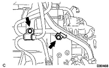 (b) Disconnect the wire harnesses 2 clamps from the oil filler tube.