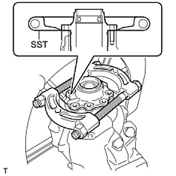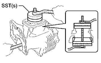 - Avoid interference between the case and the retainer, and between the SST and the transfer ring gear mounting case.