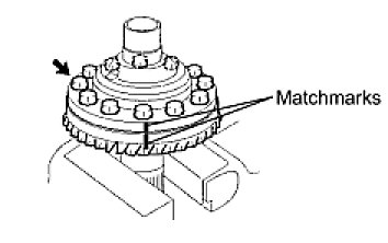 (c) Align the matchmarks on the ring gear and transfer ring gear mounting case and quickly assemble them.