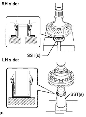 (a) Using SST(s) and a press, install the inner race of the center differential case tapered roller bearing to the transfer ring gear mounting case.