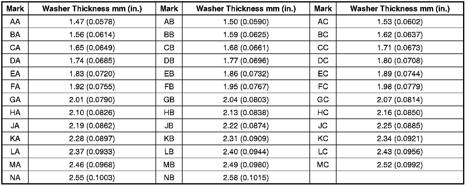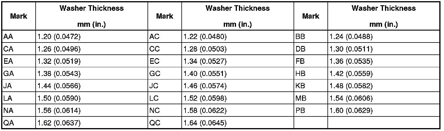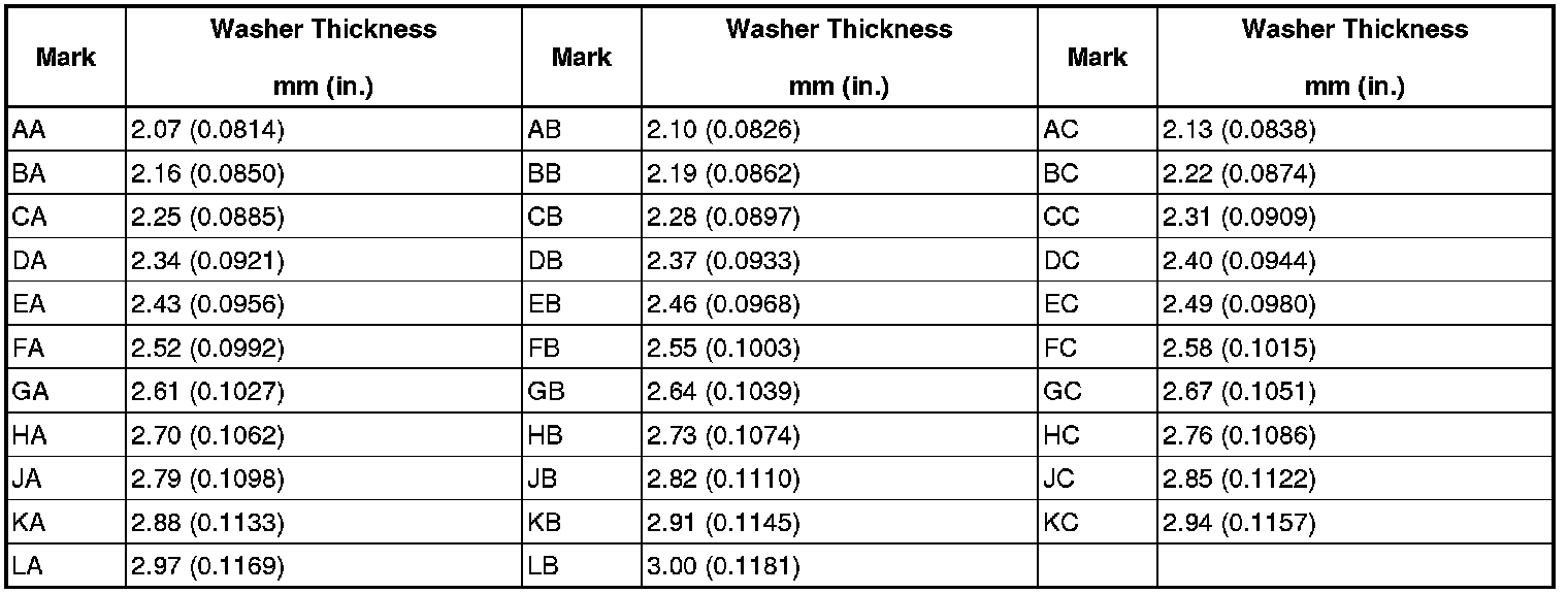 (c) In case of poor tooth contact, select a washer for the driven pinion bearing front side from the following table and replace it.