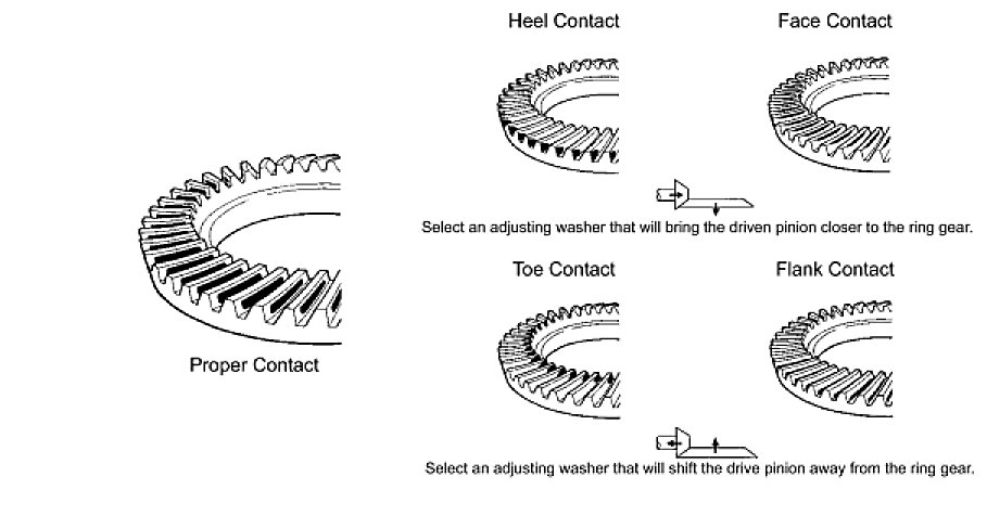 NOTE: Check the tooth contact on the ring gear at 4 places or more.