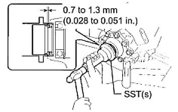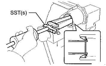 - If SST and retainer are not in close contact, the seal for the inner end of the retainer may not be properly aligned when the retainer goes into position. This may result in the lip of the oil seal being rolled back during installation.