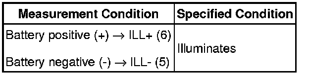 If the result is not as specified, replace the switch assembly or bulb.