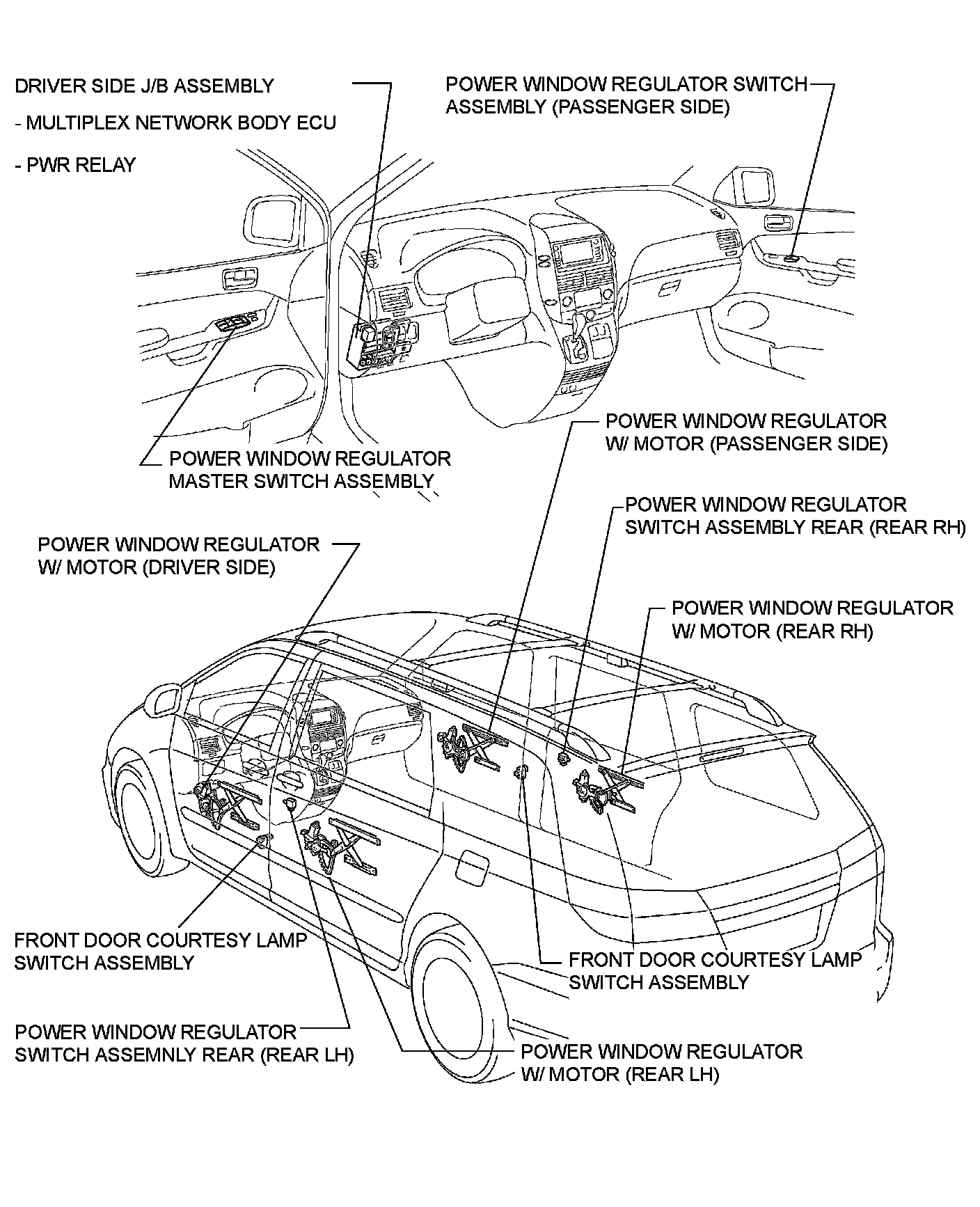 WINDSHIELD / WINDOWGLASS: POWER WINDOW CONTROL SYSTEM (w/o Jam Protection Function): PARTS LOCATION