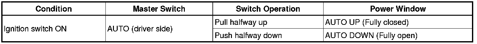*: However, manual UP function of the power window is operative when fully pulling up the power window switch.