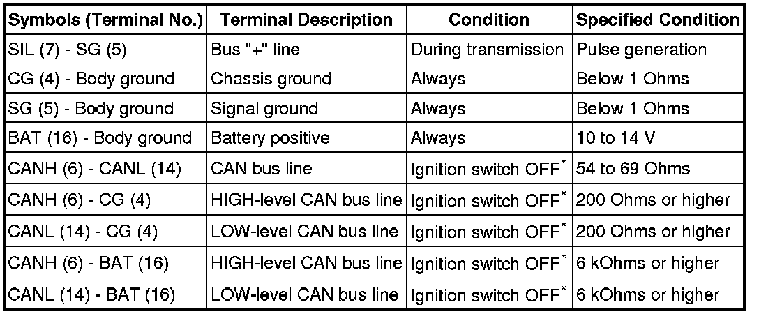 NOTE: *: Before measuring the resistance, leave the vehicle as is for at least 1 minute and do not operate the ignition switch, any other switches or the doors.