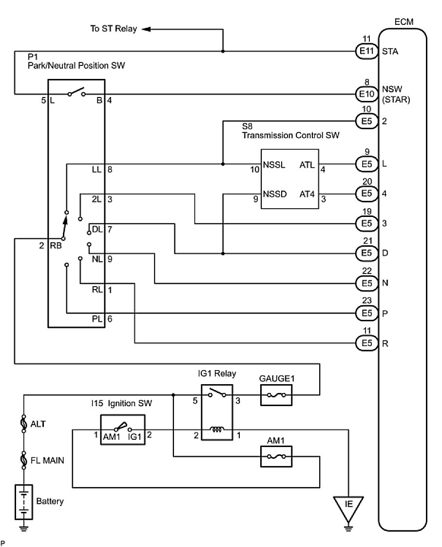2GR-FE ENGINE CONTROL SYSTEM: SFI SYSTEM: P0705: Transmission Range Sensor Circuit Malfunction (PRNDL Input)