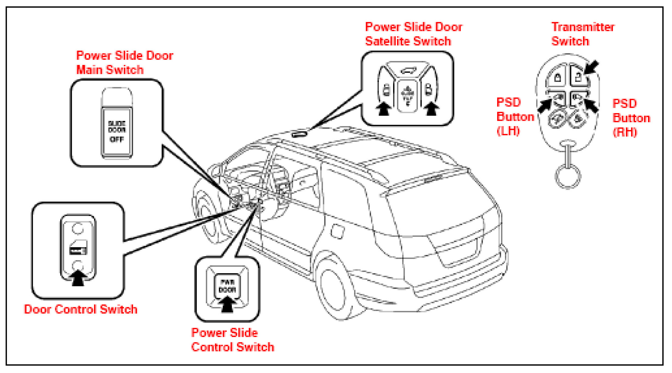A. Check that the power sliding doors are unlocked. If NOT, press the transmitter switch or the door control switch.
