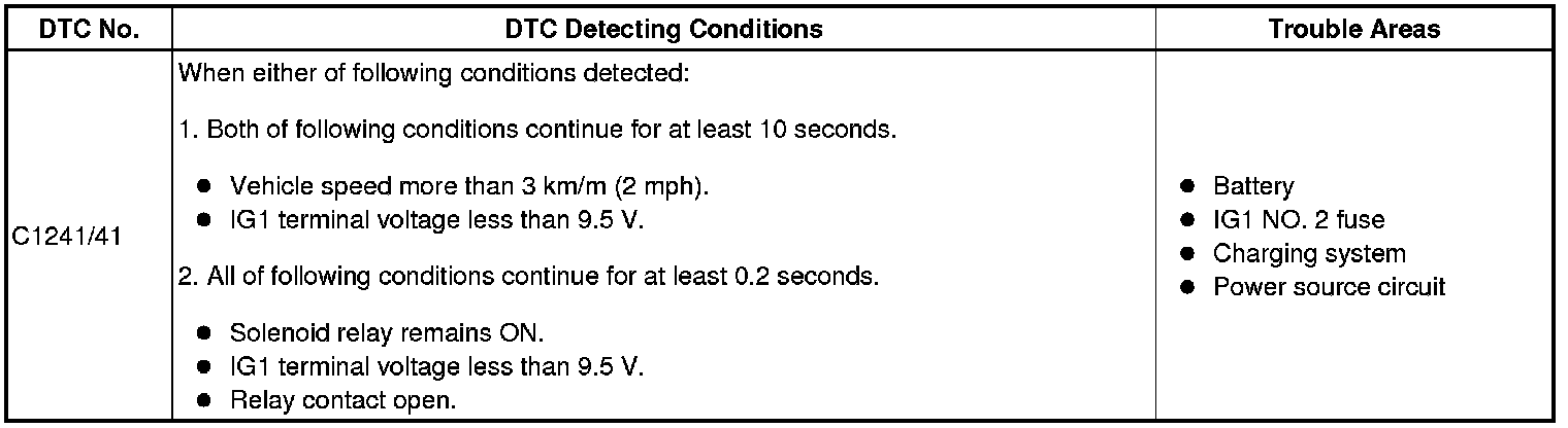 BRAKE CONTROL: VEHICLE STABILITY CONTROL SYSTEM: C1241/41: Low Battery Positive Voltage