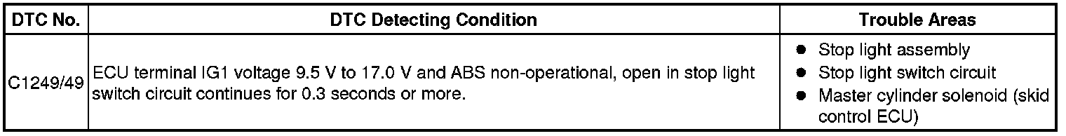 BRAKE CONTROL: VEHICLE STABILITY CONTROL SYSTEM: C1249/49: Open in Stop Light Switch Circuit