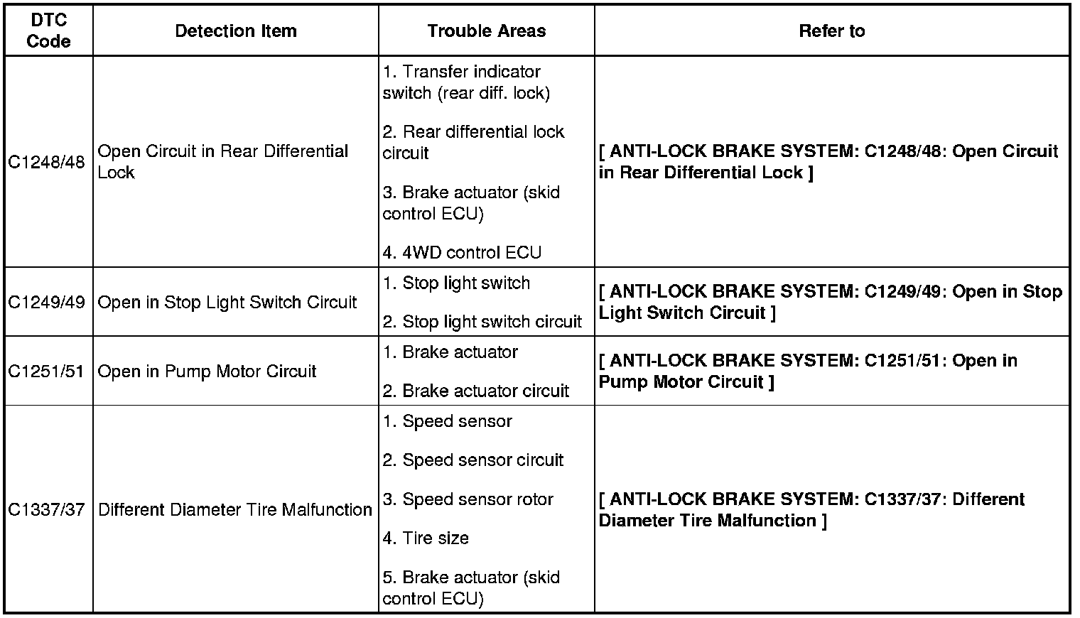 (*1): Even after the trouble areas are repaired, the ABS warning light will not go off unless the following operations are performed.