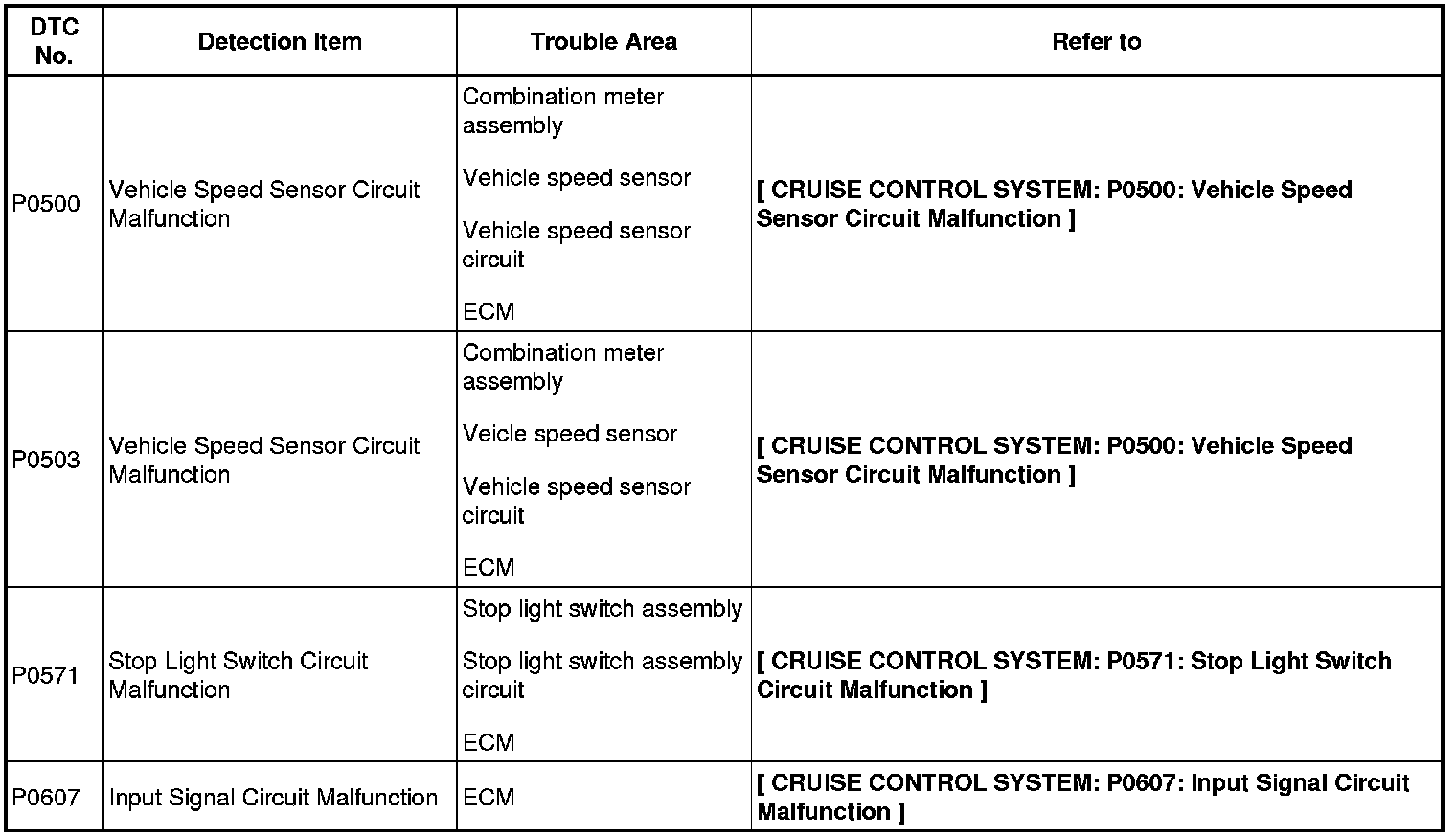P0500 - P0607: