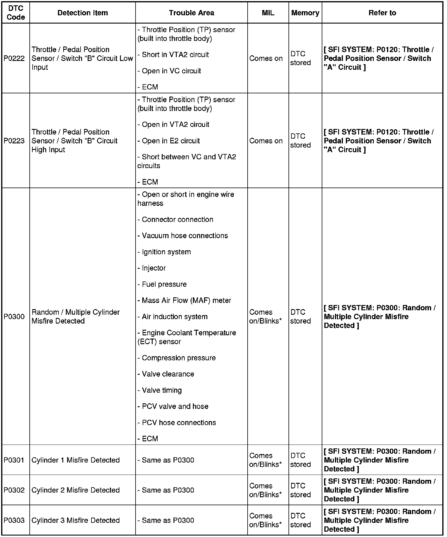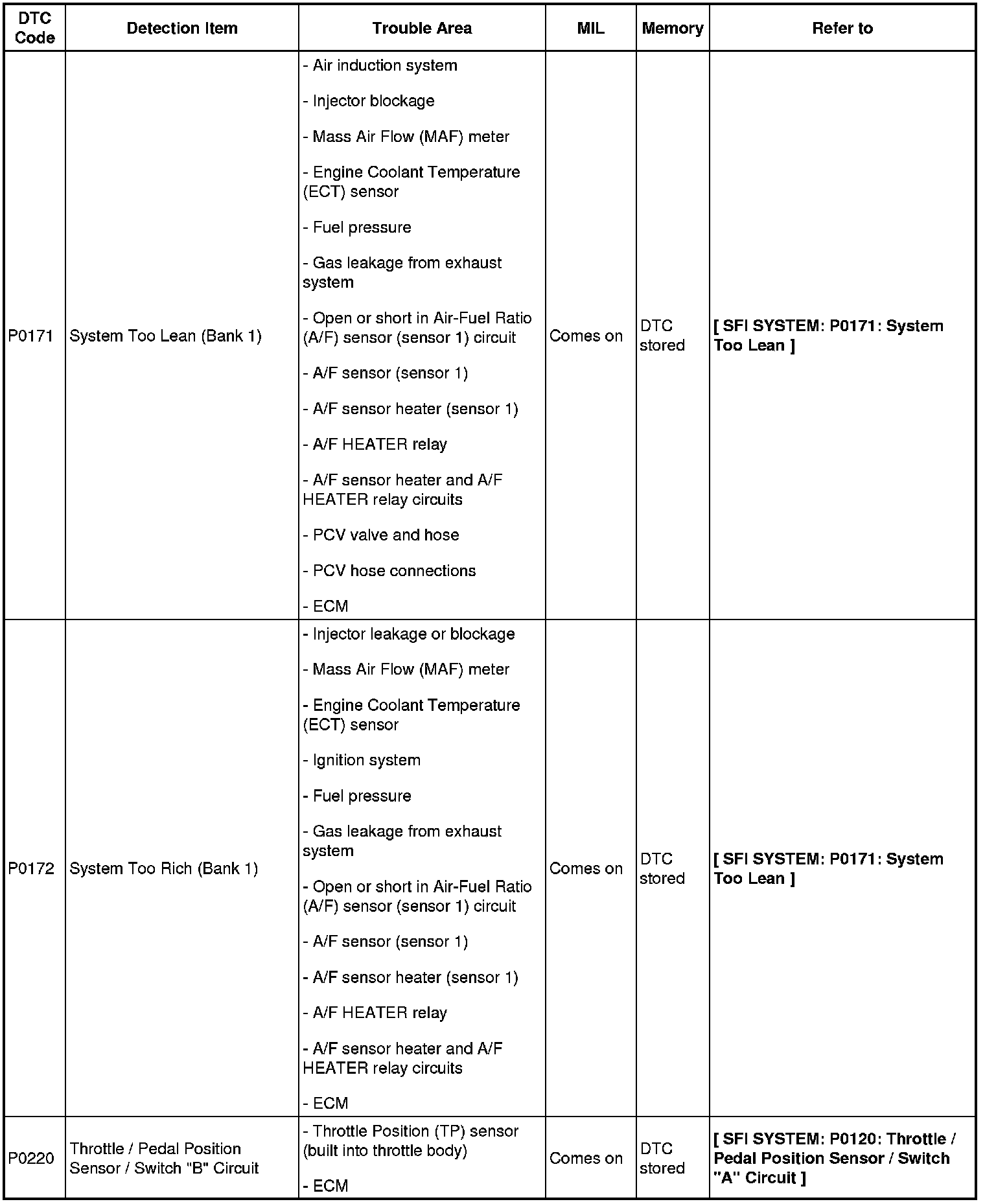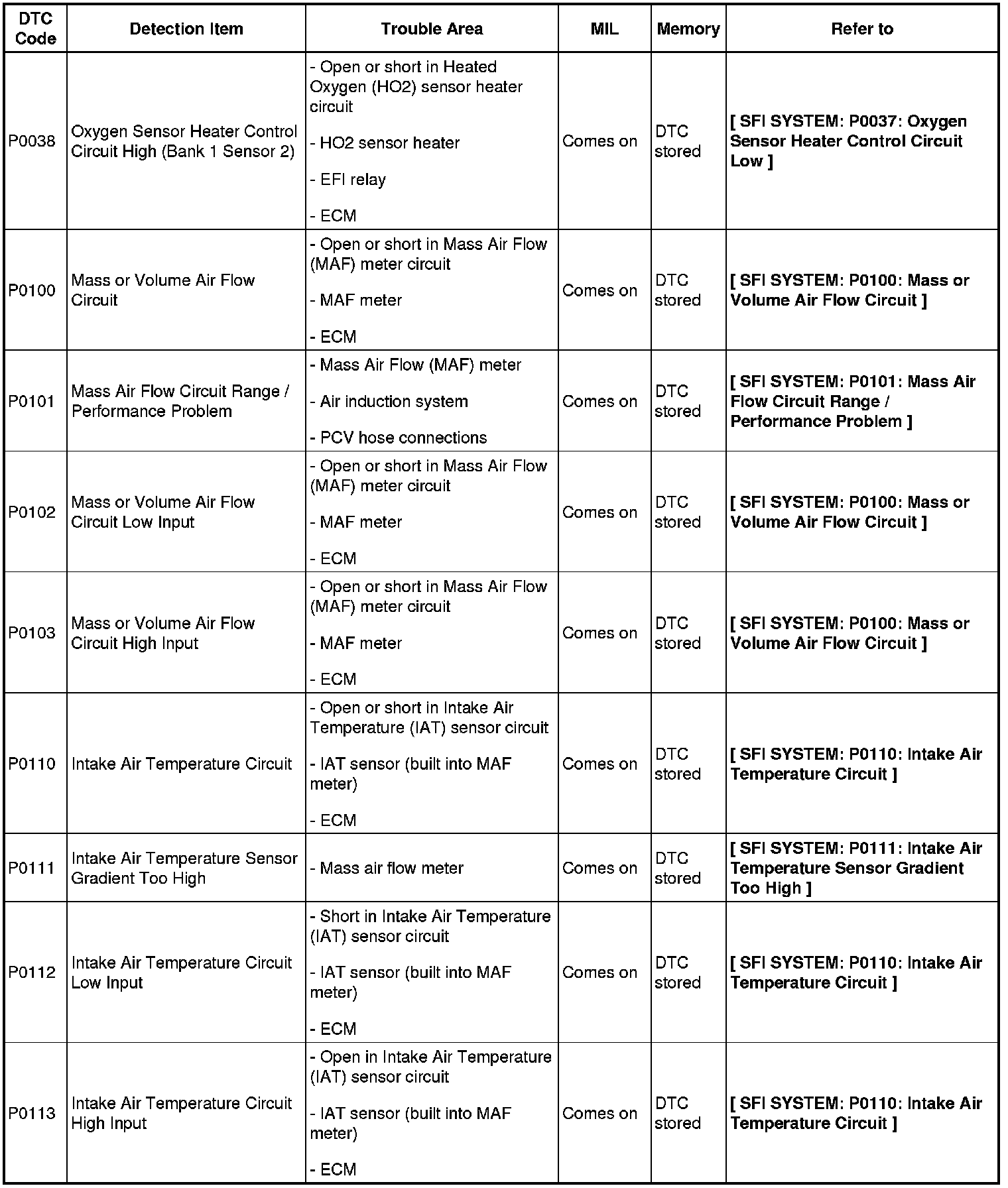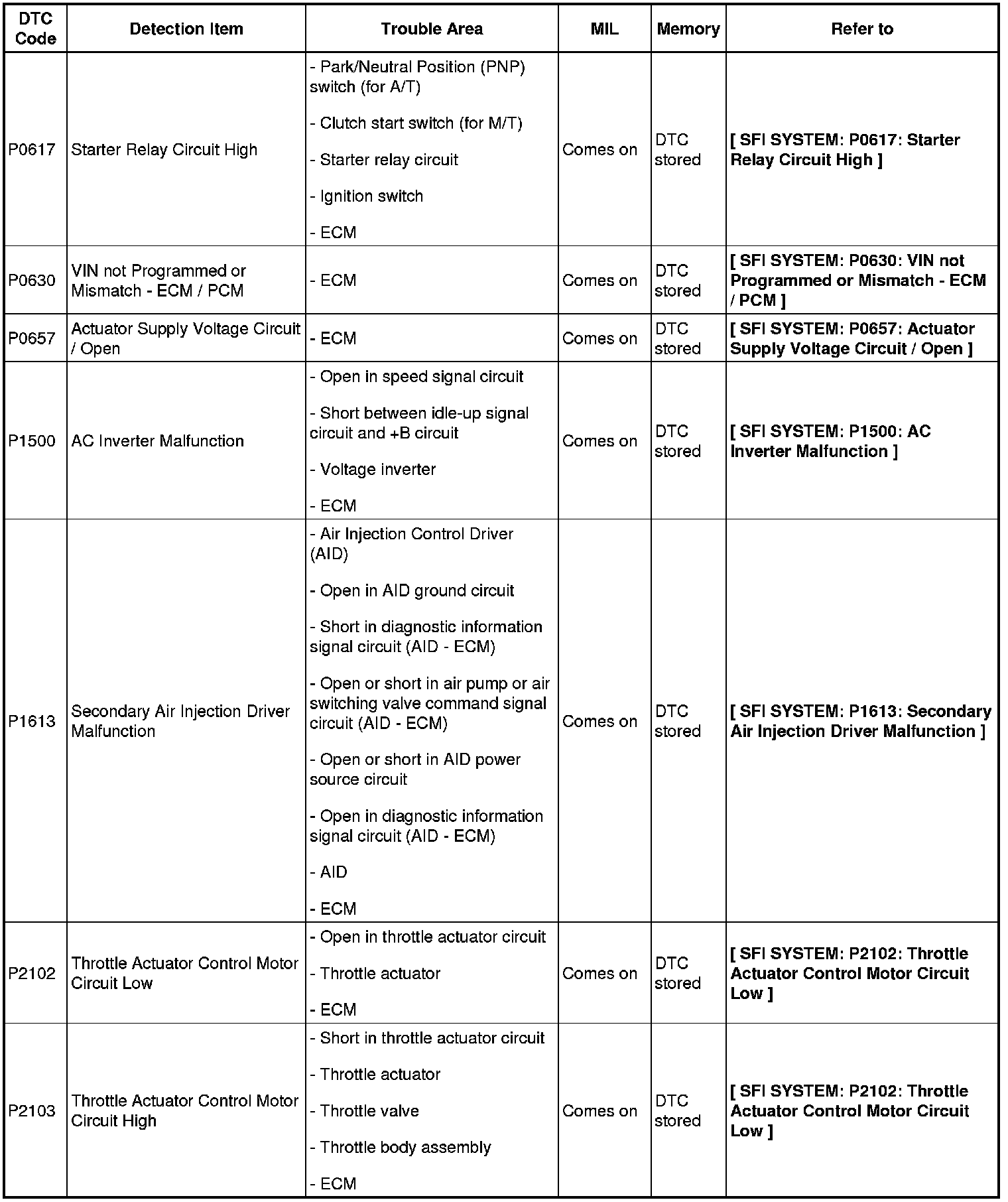 DIAGNOSTIC TROUBLE CODE CHART