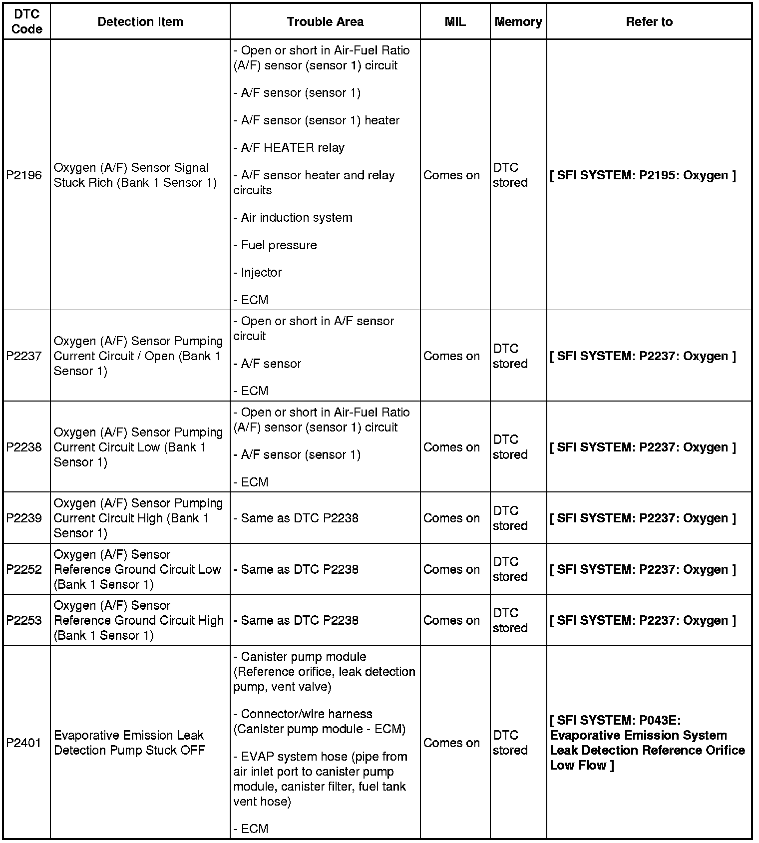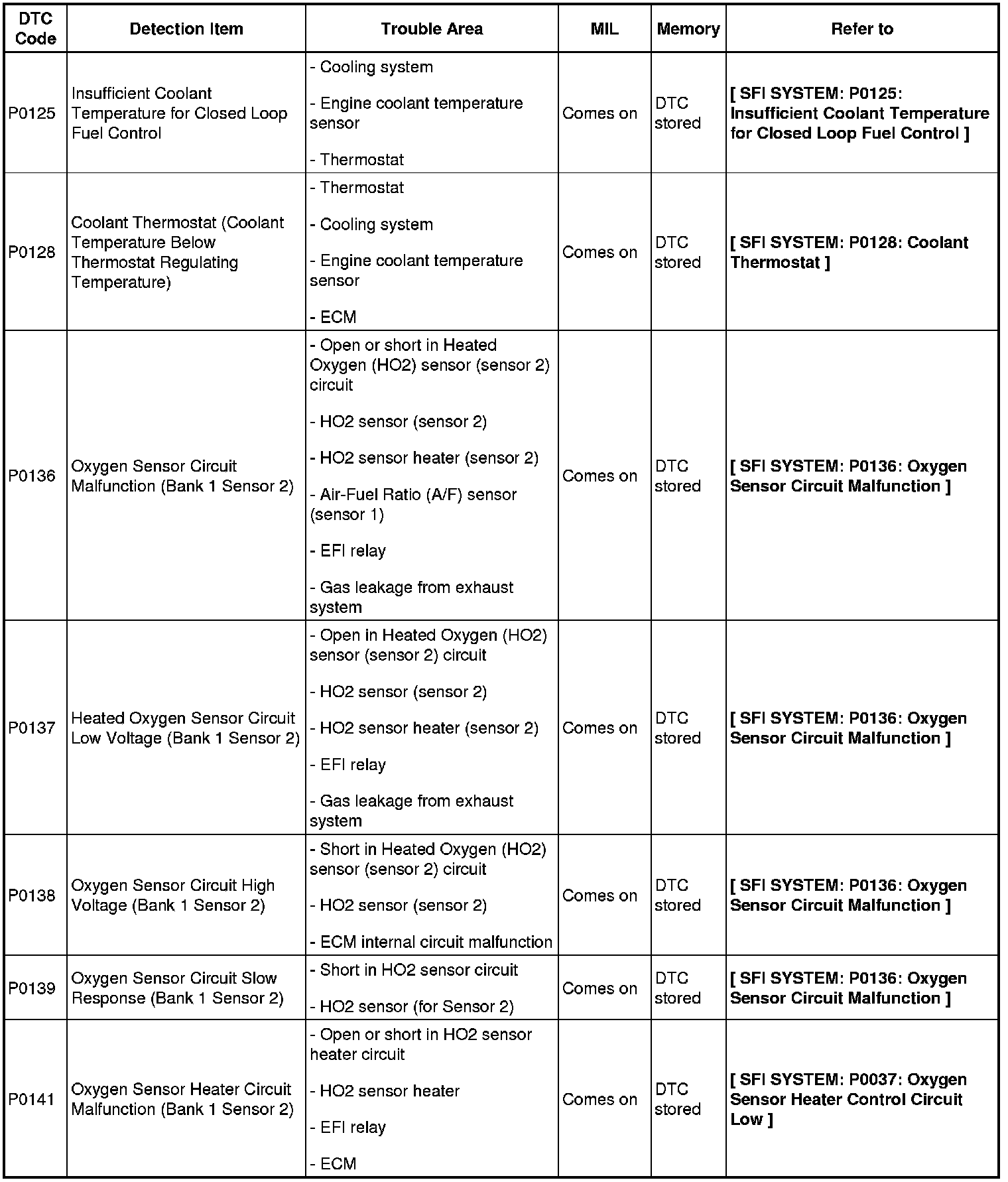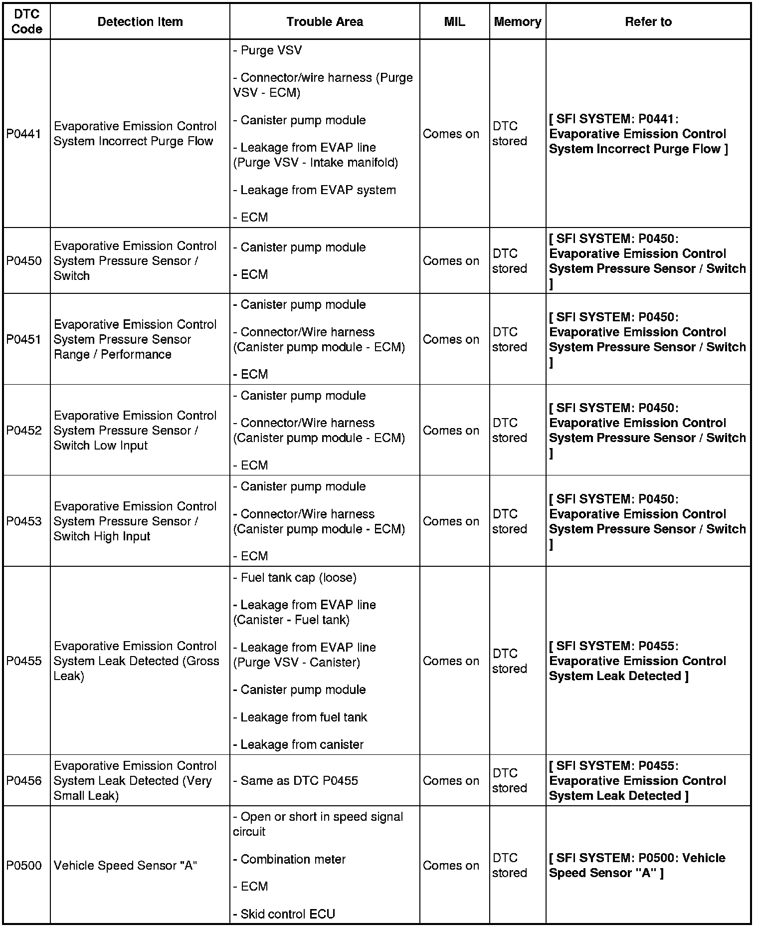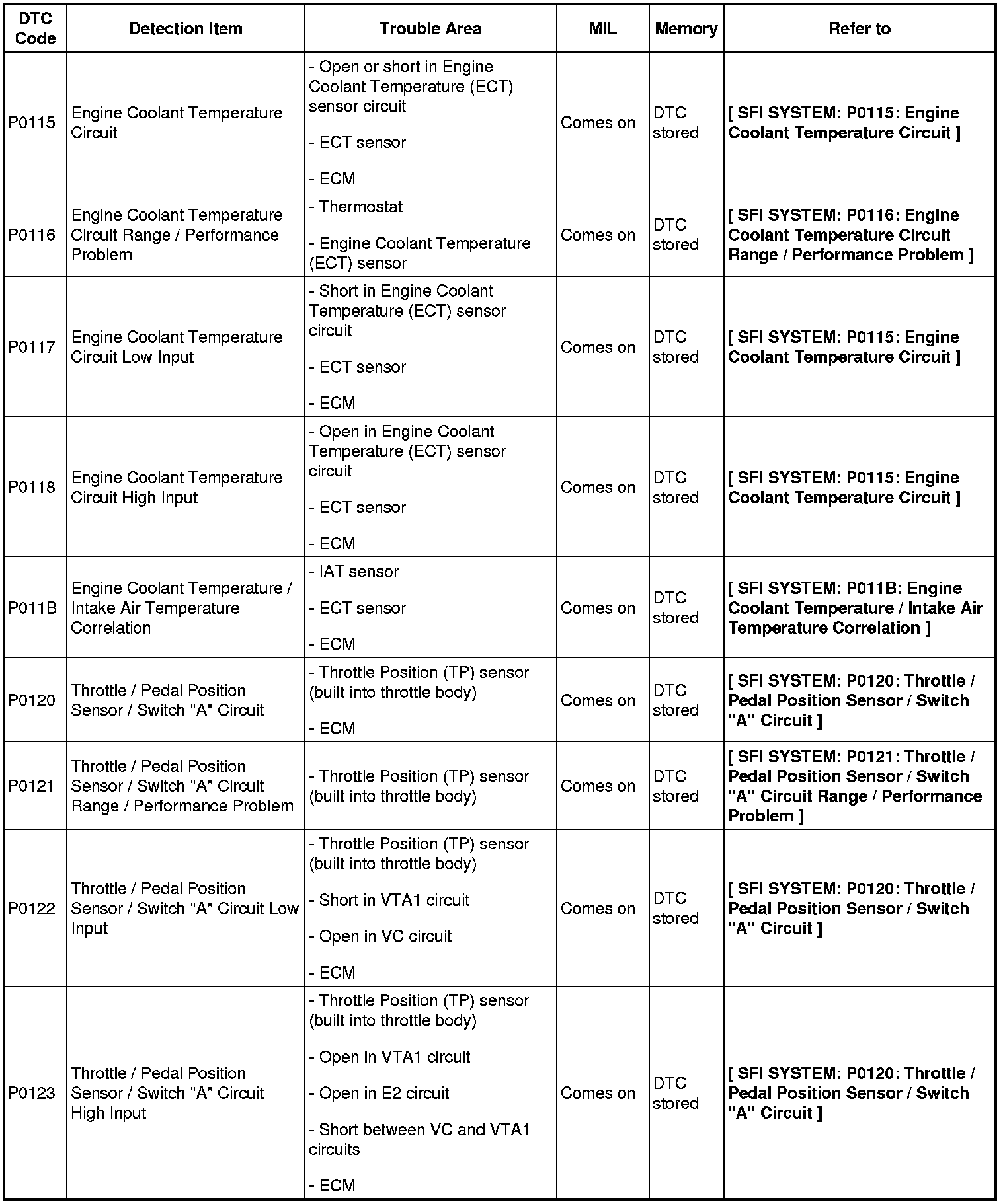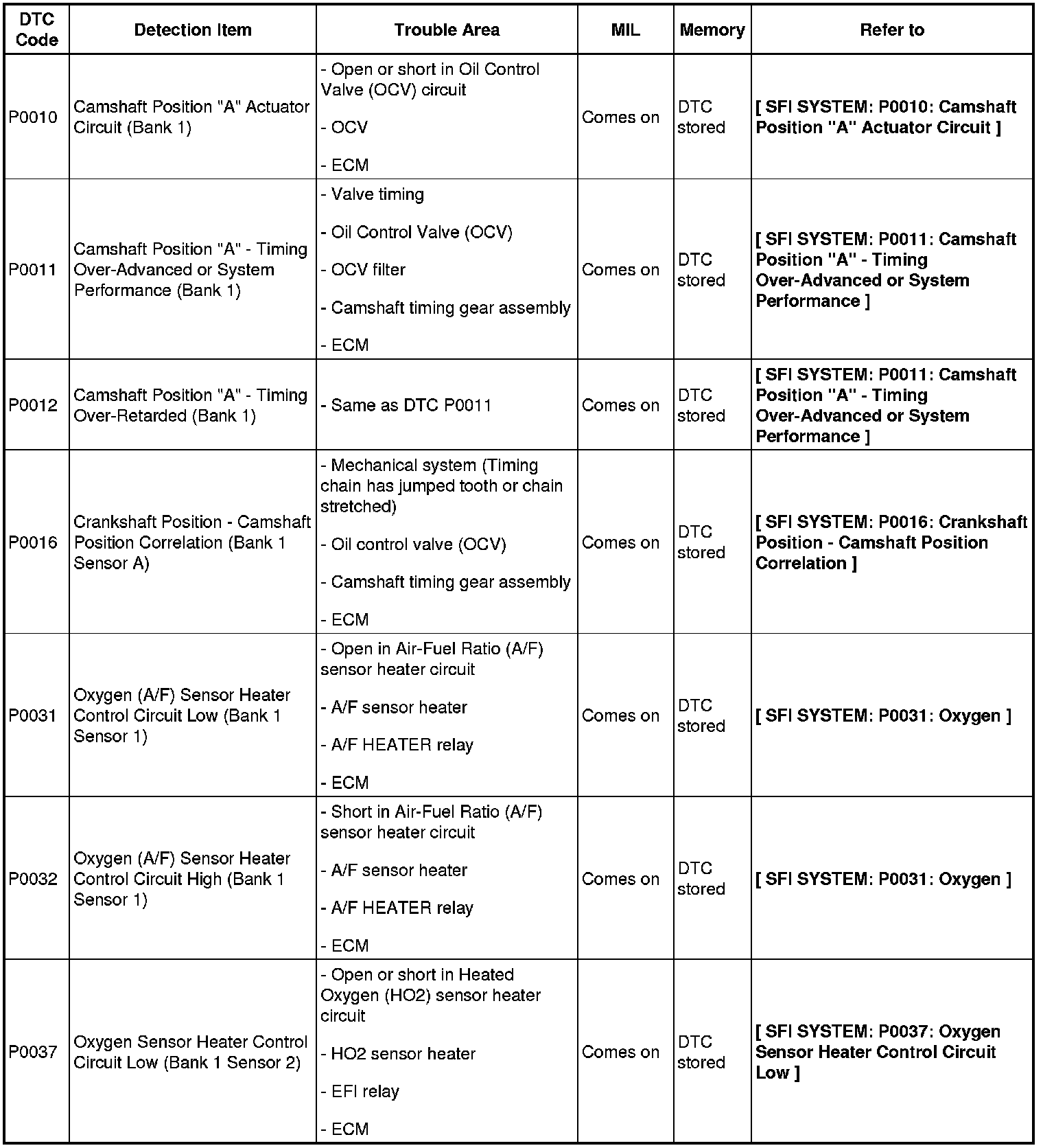 DIAGNOSTIC TROUBLE CODE CHART