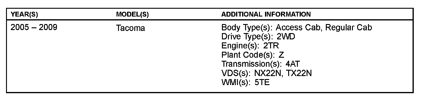 ^ The following sections have been updated to include information for 2005 - 2007 model year Tacoma vehicles:
