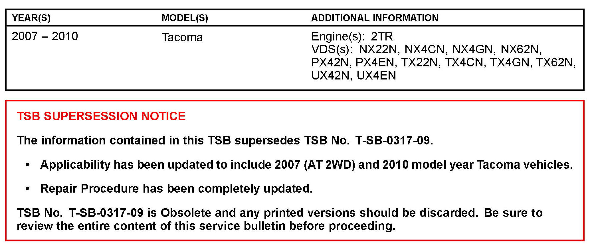 This TSB applies to vehicles produced BEFORE the Production Change Effective VIN shown.