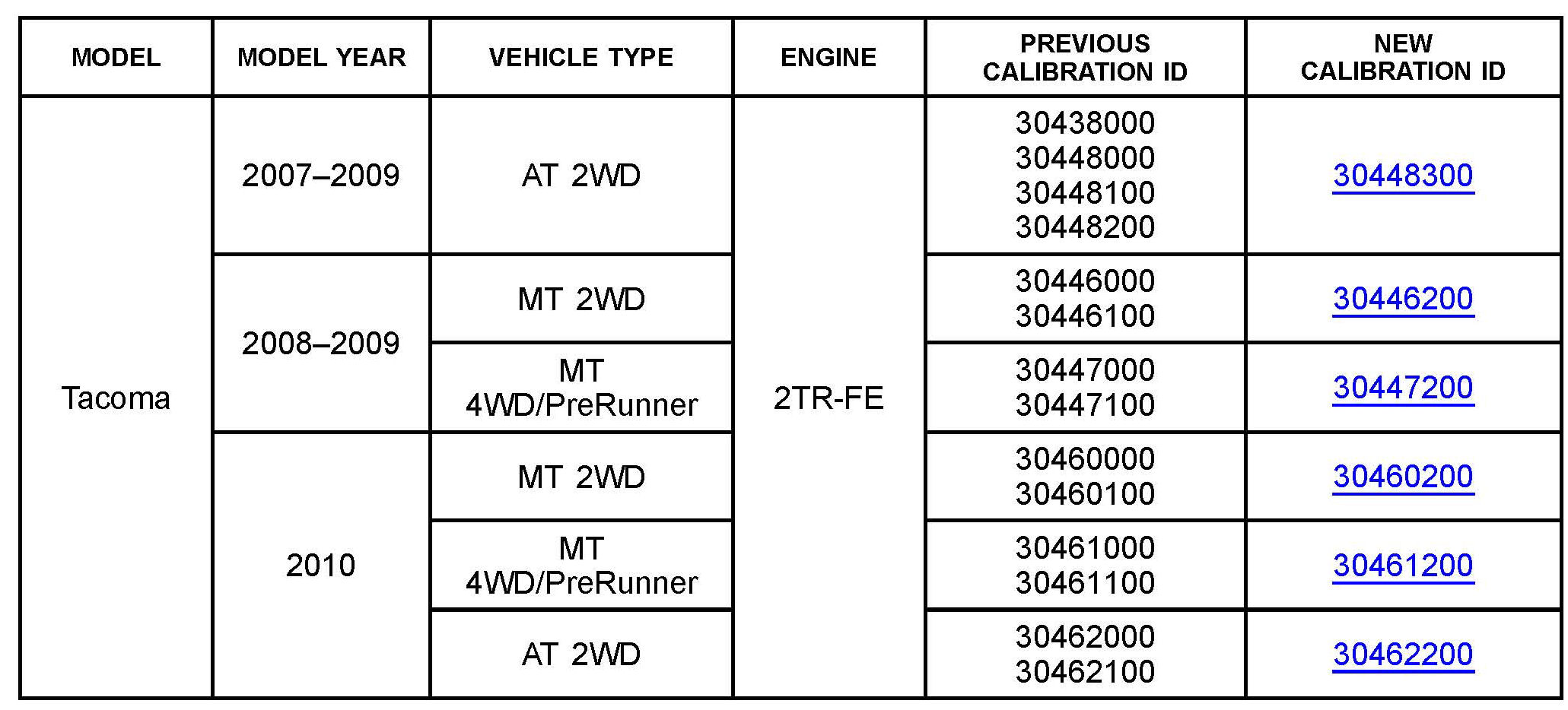 ^ Calibration ID(s) [Refer to the Calibration Identification Chart for the NEW CALIBRATION ID]