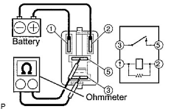 If the result is not as specified, replace the circuit opening relay assembly.
