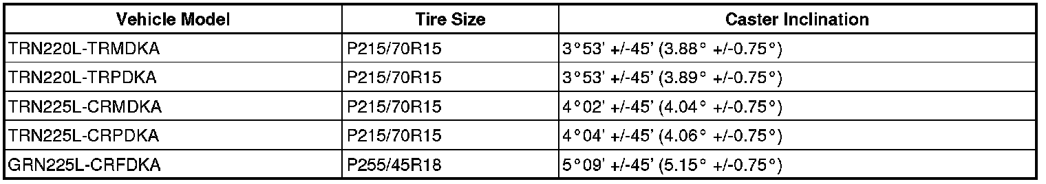 Standard caster inclination for 4WD (Canada/ 4 leaf spring):