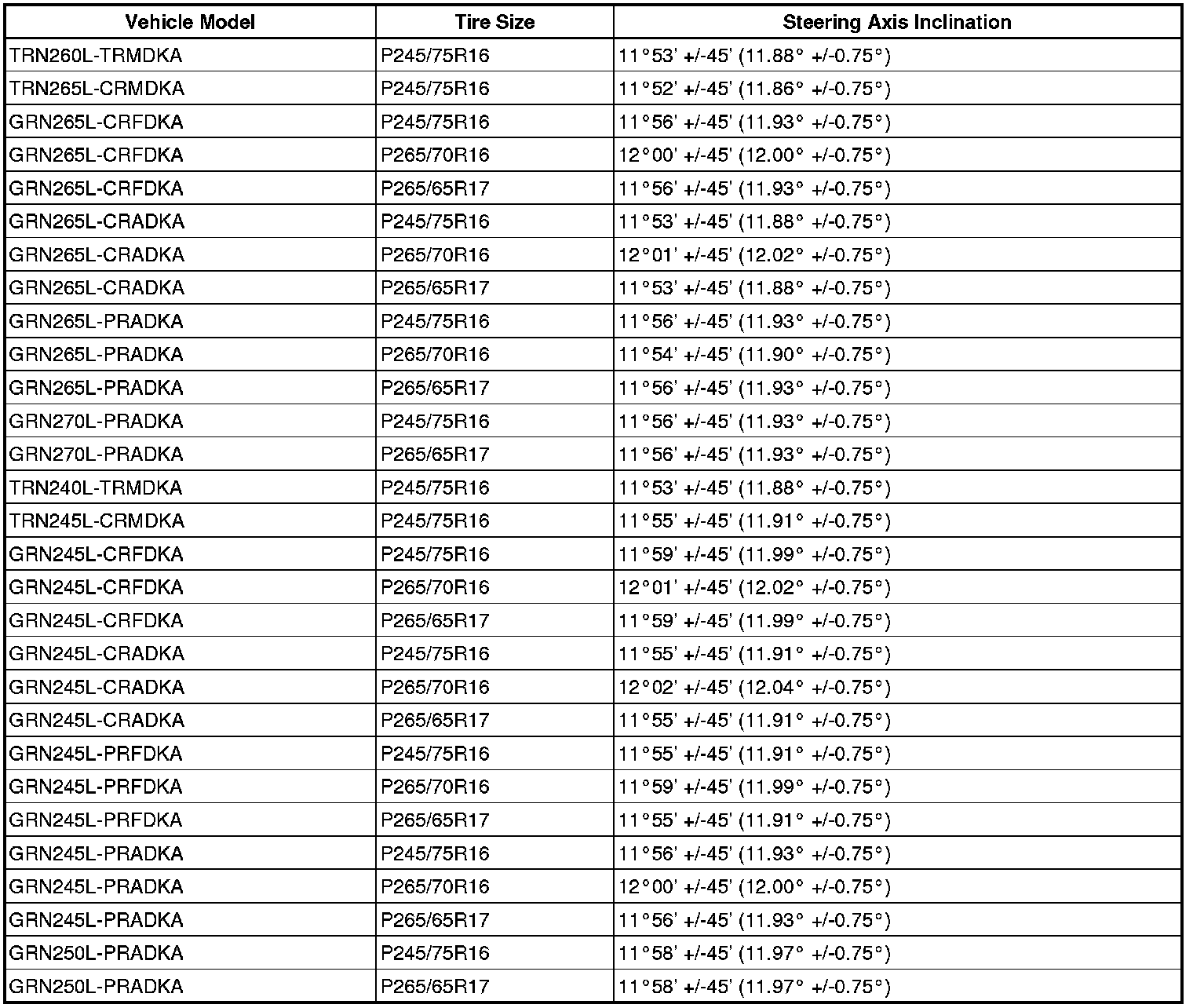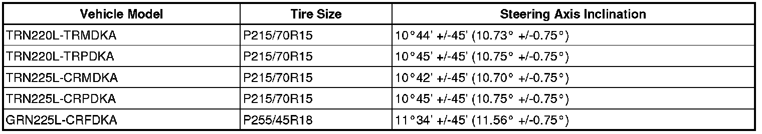 Standard steering axis inclination for 4WD (USA/ 3 leaf spring):
