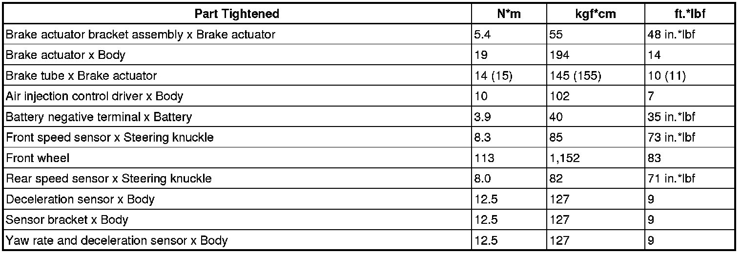 SERVICE SPECIFICATIONS: BRAKE CONTROL: TORQUE SPECIFICATIONS