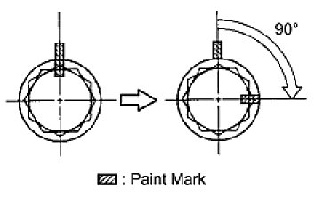 Check that the paint mark of each bolt is at a 90° from the original position.