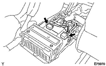 (b) Disconnect the 2 connectors and remove the 2 wire harness clamps.