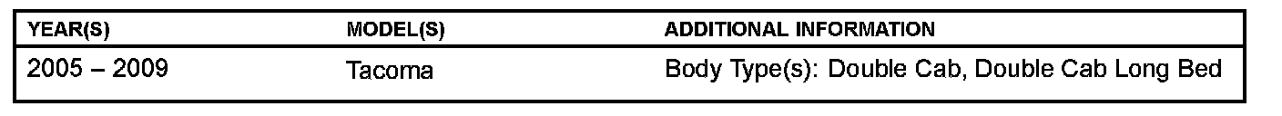 ^ Applicability has been updated to include 2005 - 2008 model year Tacoma vehicles.