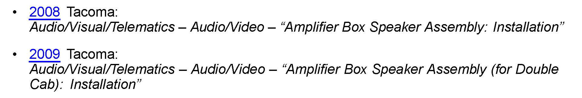 3. Install the updated JBL amplifier per TIS applicable model year Tacoma Repair Manual: