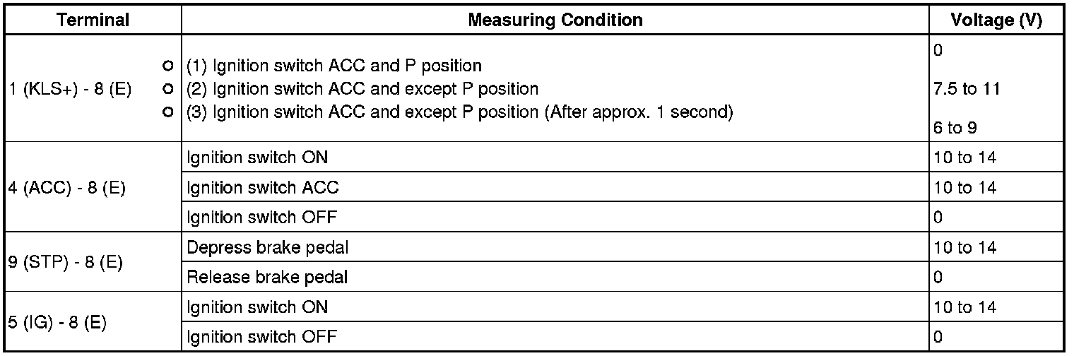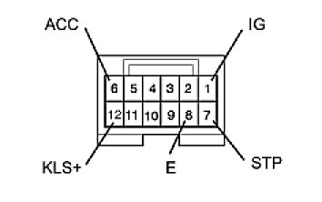 (b) Connect KLS+ (4) terminal to the battery positive (+) terminal, and KLS- (3) terminal to the battery negative (-) terminal, and apply about 12V between KLS+ and KLS- terminals.